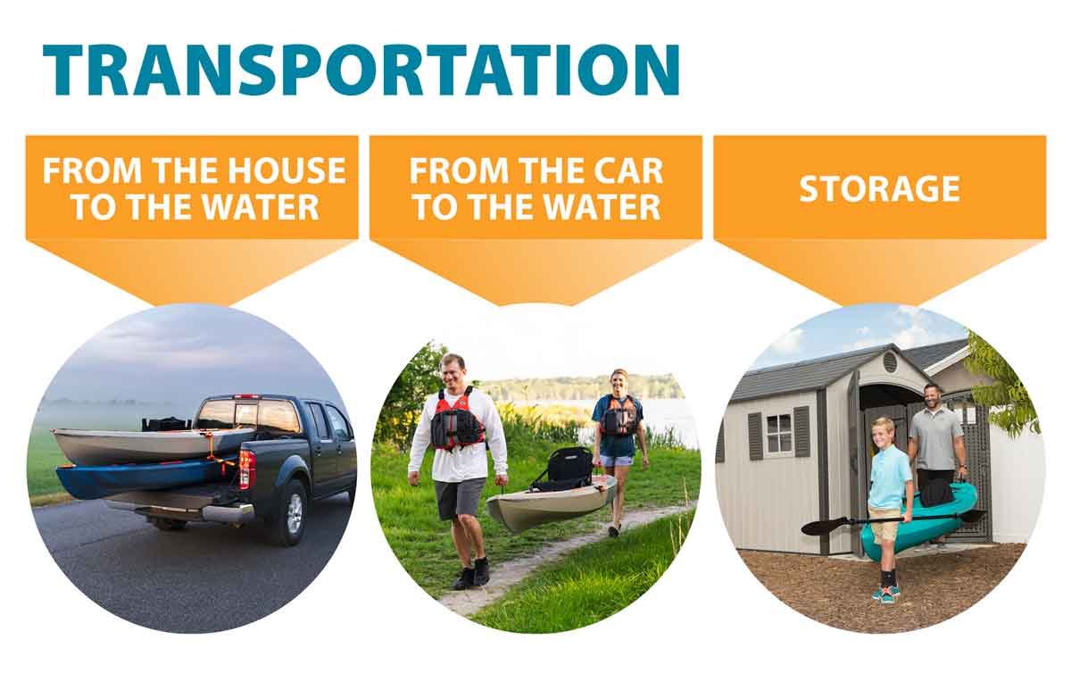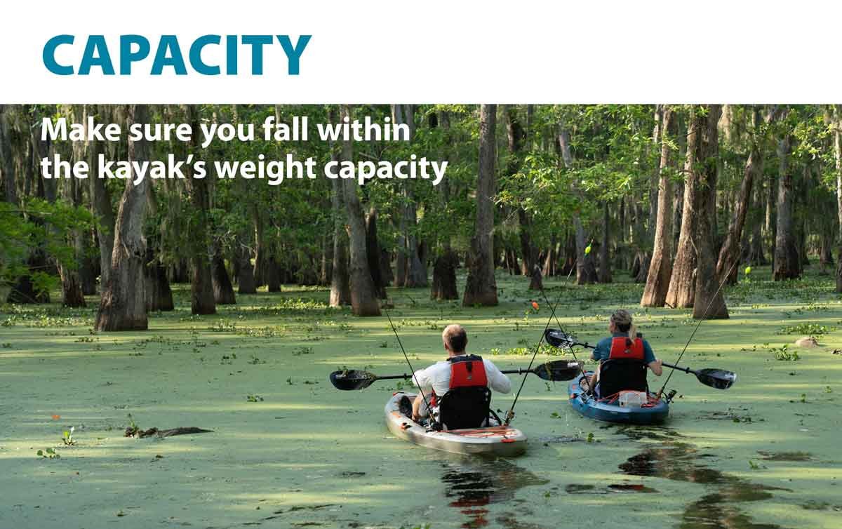 Lifetime Angler Kayak �C The 10 ft. adult kayak has a 275 lb. weight capacity and comes in tan. This model is a sit-on-top (SOT) kayak and comes with a padded seat back and seat pad. front and rear shock cords. two 6 in. storage hatches in the rear and center . two flush mounted fishing pole holders. one top mount rod holder. (1) paddlekeeper. (1) adult black paddle. and front and rear T-handles. 5-year limited warranty.